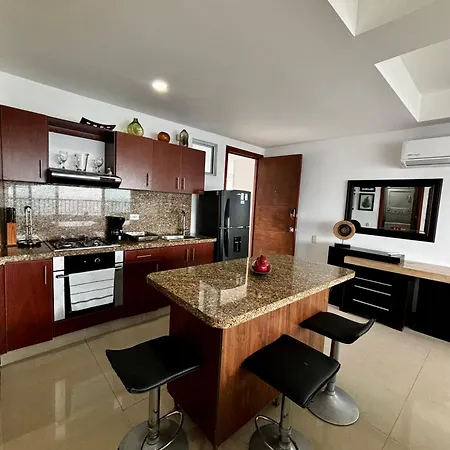 El Apartamento Paraiso En Bocagrande Con Vista Al Mar Cartagena ofrece Wi-Fi, servicio de conserjería y se encuentra a 2 km de la Plaza Santo Domingo. Este apartamento está a 2 km del Parque De La Marina en Cartagena.